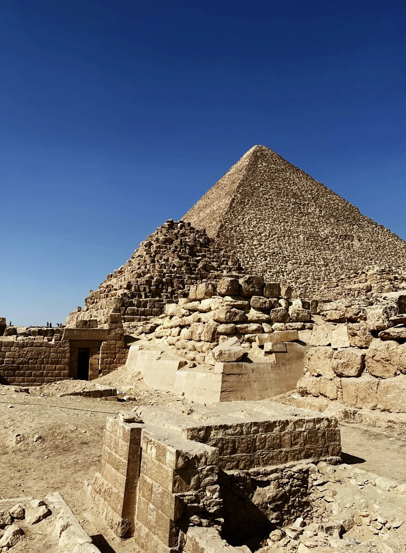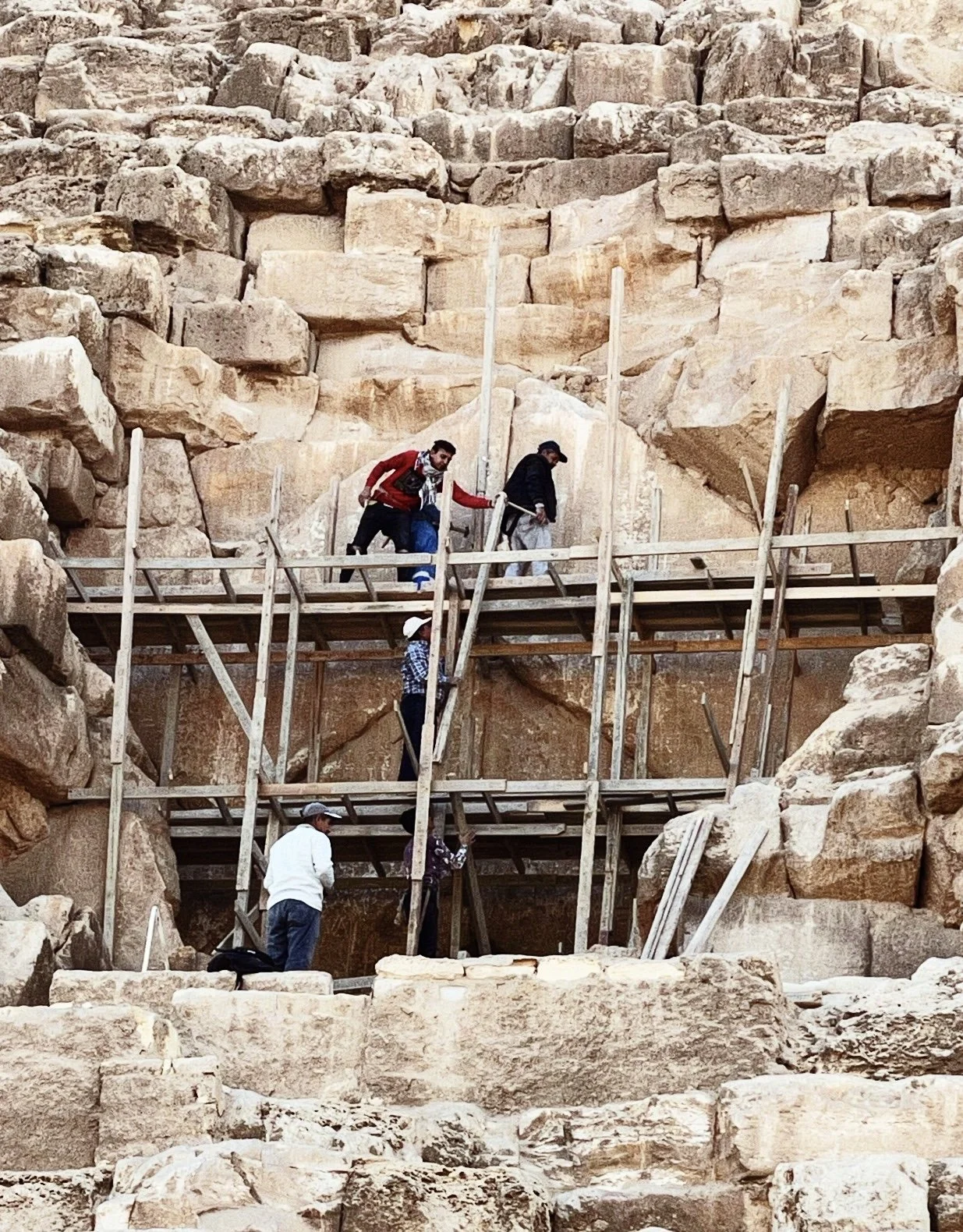The Great Pyramid’s outer layer of limestone has eroded – work is constantly being done to preserve the exterior