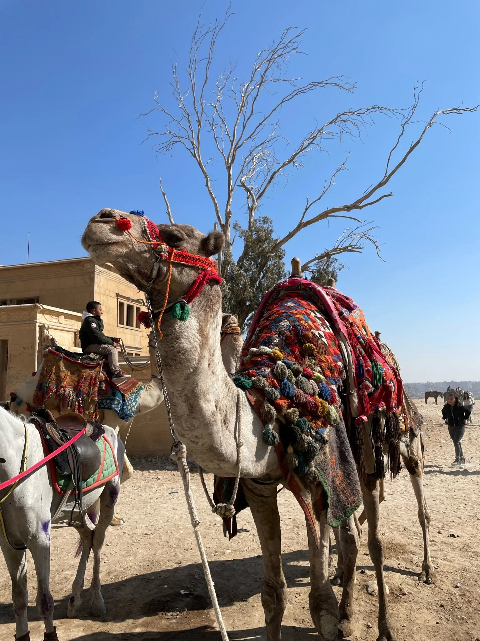 Our camels for the next hour…can you see all three of the pyramids?
