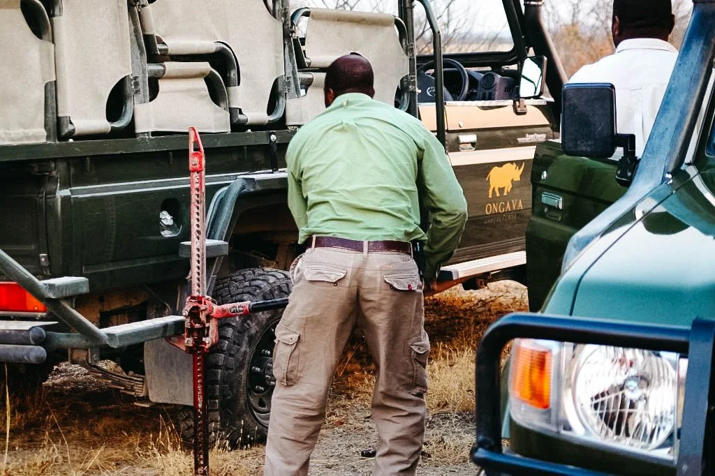 There is a little humor to share here…..so, on day two or three driving around the compound….I ask Willy if he ever gets a flat tire. There are no roads in the wild and it is sturdy brush and rocky sand. The question had no more come out of my mouth when one of the Land Cruiser tires blew out! By this time, it’s roughly 4:30pm…..the lions are roaring and cubs are wanting to be fed. Willy informs us that in order to change the tire we must get out of the vehicle. We are not more than 2 feet away from two lionesses and their group of cubs……..the thought was that we each only had to out run one person! Kind of a rough crowd to hang with when the going gets tough!