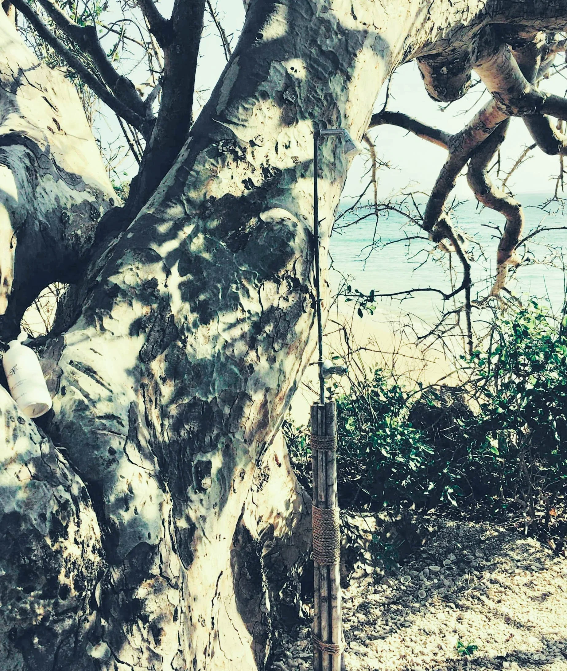 Because we’ve been traveling and flying and walking……I select the “Traveler Detox” treatment. I walk under the Spa sign and am looking for the Spa building……I end up at a cave with a massage table. It IS stunning and you can hear the water coming up through the rock. Pearl informs me I AM in the Spa and I need to remove my clothing and lie on the table. Here’s the thing…..I can see people on the beach below….see where I’m going with this??? Sooooo, I disrobe (using a shell to hang my clothing…..) and lie down. I am coated with a thick, slimy potion that will, hopefully, not attract any wild animals and will remove any toxins from airplane air….travel, etc. Pearl brings out the “saran wrap”….ever watch Ray Donovan???? I begin to sweat….not in a “spa” way! I am double wrapped and left to sweat it out. Pearl returns and tells me it’s time to shower…..I see only one room and am still concerned about the people on the beach……she grabs me by the arm and guides me to the “showing area”.
