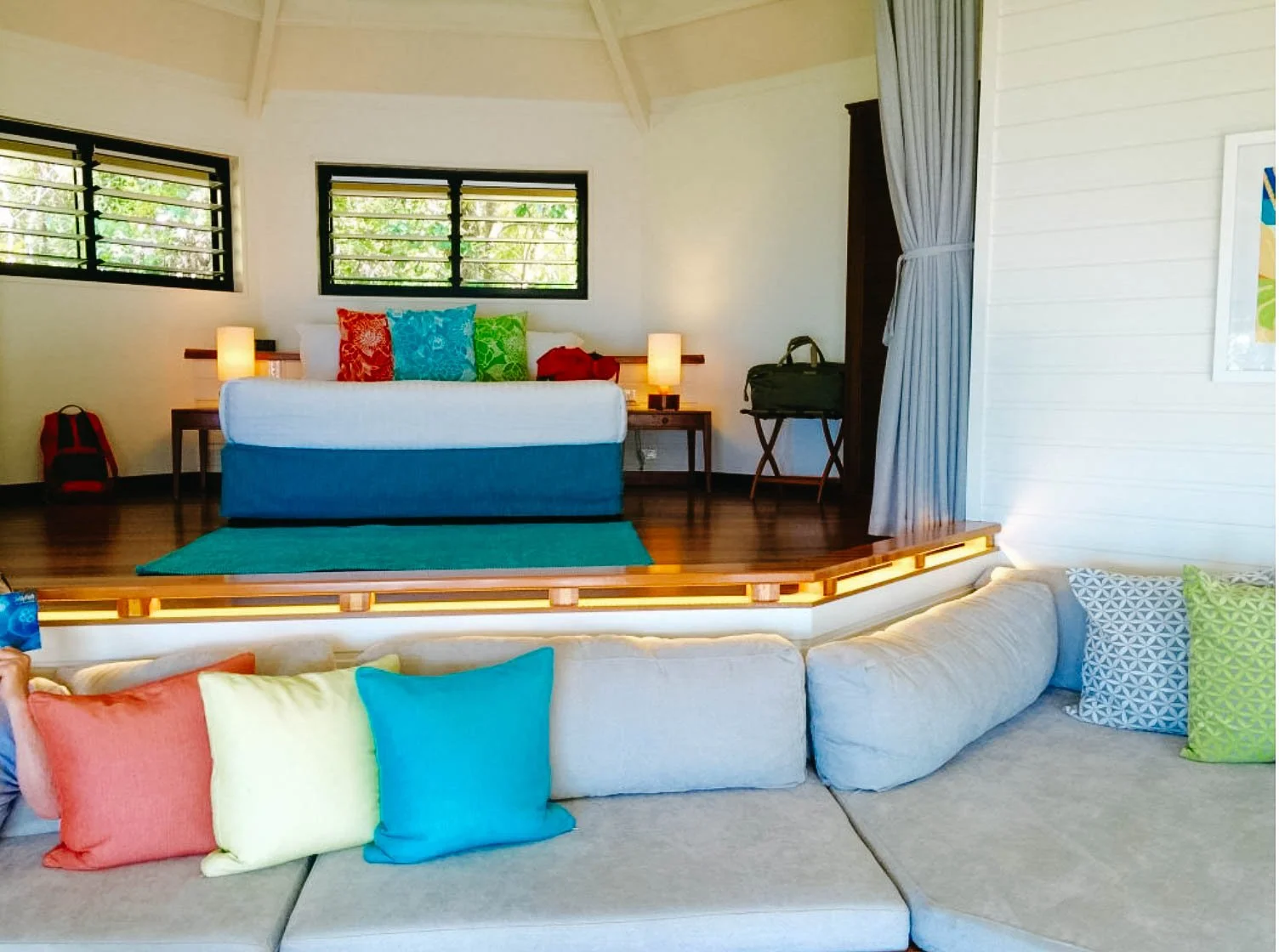 The island was devastated by a “cyclone” that hit in the 2011. The previously built resort was in tatters. But Sam and Keri-Ann could see the potential. They began to redesign and rebuild. The result is a small, lush resort with villas built into the forest. Sam made sure everything is run with the least amount of impact on the island’s flora and water. The food is grown on the island and the most amazing creations appear on your plate at EVERY meal (and quite a few times in between). The staff is small, well-trained and friendly. I even had a Latte delivered to the gym!!!!!! Love Bedarra:)