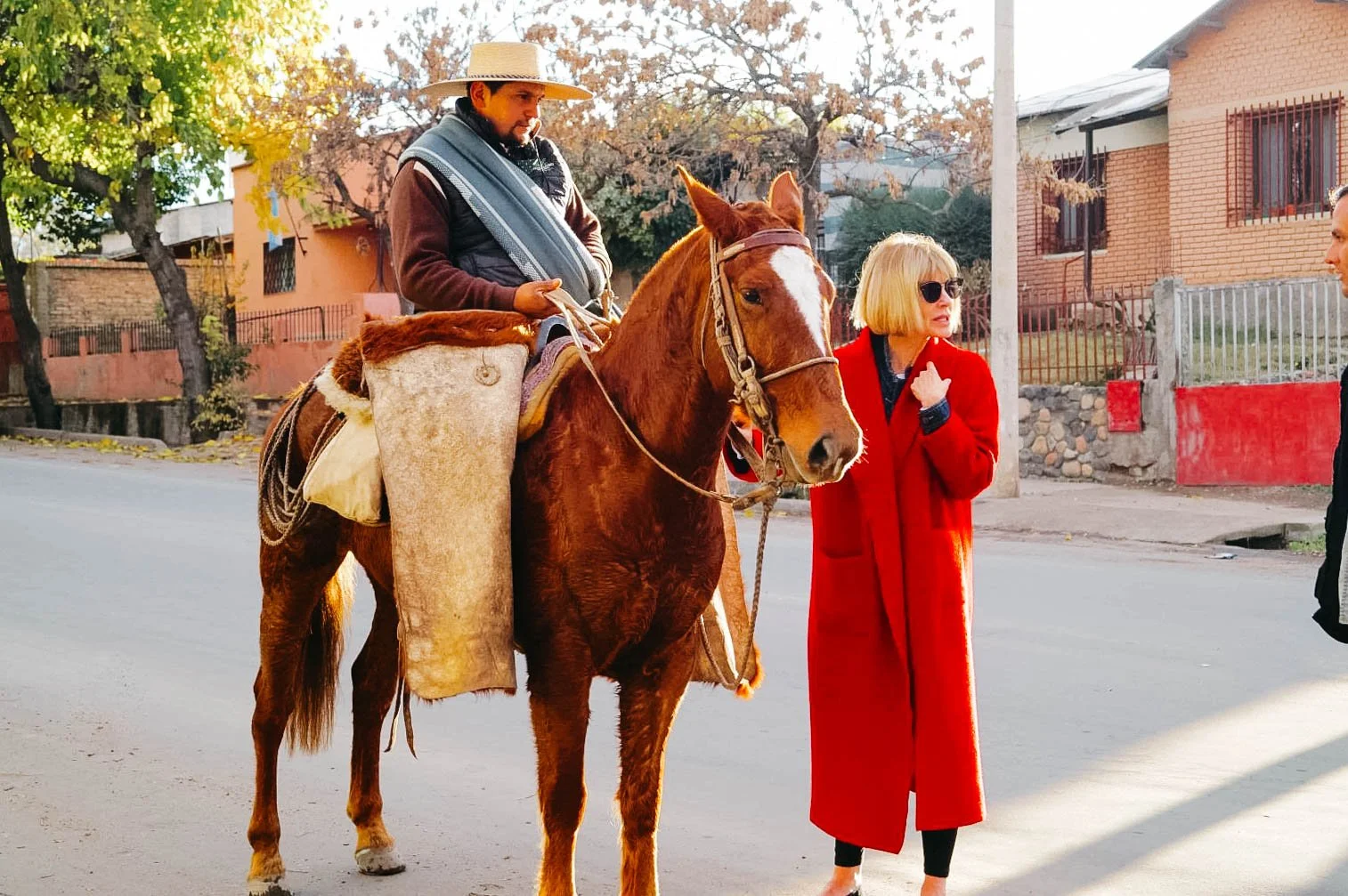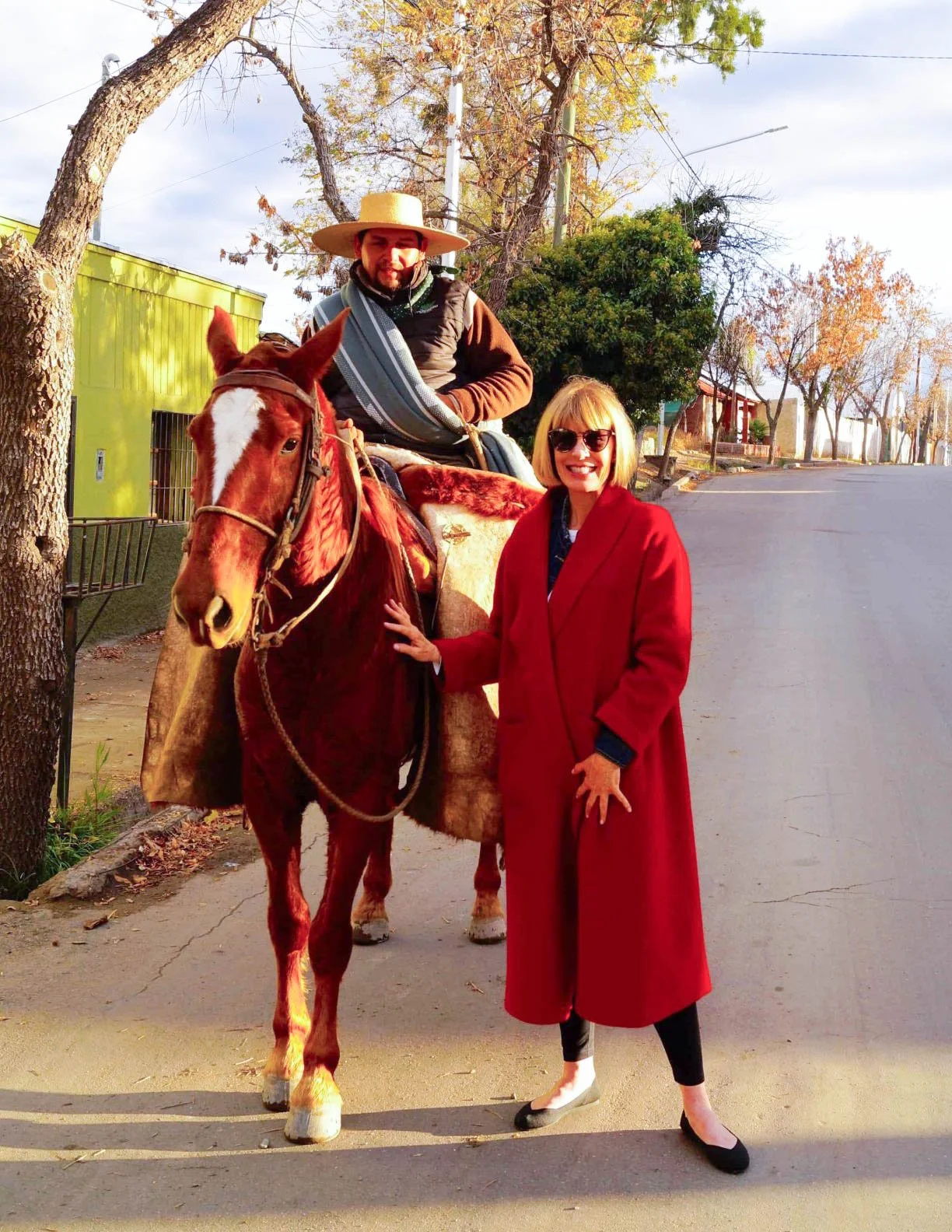 YOU CAN JUST SEE OUR DRIVER IVAN ON RIGHT … THIS UNSUSPECTING GAUCHO RIDING ALONG THE STREET … I AM TRYING TO ASK HIM IF I CAN TAKE HIS PHOTO … CRAZY BLONDE LADY